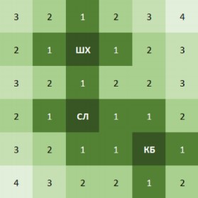 Как и в предыдущем пункте, ответ можно получить разными способами. К примеру, можно снова отметить на схеме города расстояние от каждого квартала до ближайшей уже построенной кофейни, отдельно отметив кварталы, где строительство невозможно. Глядя на такую карту, можно попытаться угадать, где следует построить новую кофейню: логично предположить, что ее выгоднее строить в той части города, жителям которой приходится дальше всех ходить за кофе. Строить кофейню следует так, чтобы в нее ходило как можно больше людей: не только из тех кварталов, до которых в «Старладницу» ходить ближе всего, но и из тех, откуда после ее открытия будет одинаково близко ходить в несколько кофеен. В данном случае наиболее оптимальным кварталом для открытия кофейни является C4 – это можно проверить, сравнив прибыли «Старладницы» в случае открытия в C4 и в любом близлежащем квартале. Расчёты приведены в таблице: